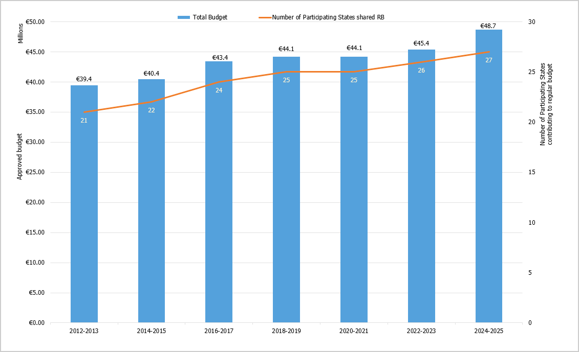 The IARC Regular Budget has grown during the past decade thanks to the admission of new Participating States, with the number of countries contributing to the budget rising from 23 in 2014 to 27 in 2024*.