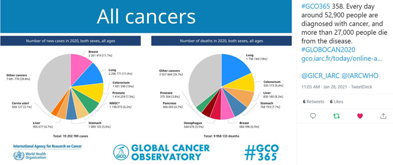 CSU compiles, estimates, and reports cancer statistics through its flagship projects and databases and through high-impact peer-reviewed publications. The Global Cancer Observatory is an interactive web-based platform that presents global cancer indicators of direct relevance to cancer research and policy, developed via CSU’s descriptive research programme. See also the links to CSU websites.