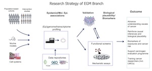 Considering these objectives and opportunities, EGM contributes to IARC’s overall mission by extending the current knowledge of cancer etiology and by providing the evidence base for carcinogen evaluation and cancer prevention. EGM’s strategy builds on its strengths and recent achievements and capitalizes on opportunities brought about by conceptual and technological advances in the fields of laboratory science, molecular epidemiology, and computational science. For current and future work, EGM is focusing on three priority areas: (i) environmental exposures, (epi)genetic changes, and cancer risk throughout the life-course, (ii) the functional role of genetic and epigenetic changes in carcinogenesis, and (iii) obesity, epigenetic changes, and cancer.