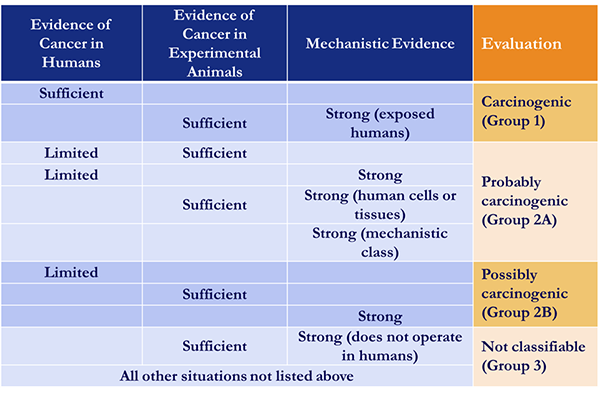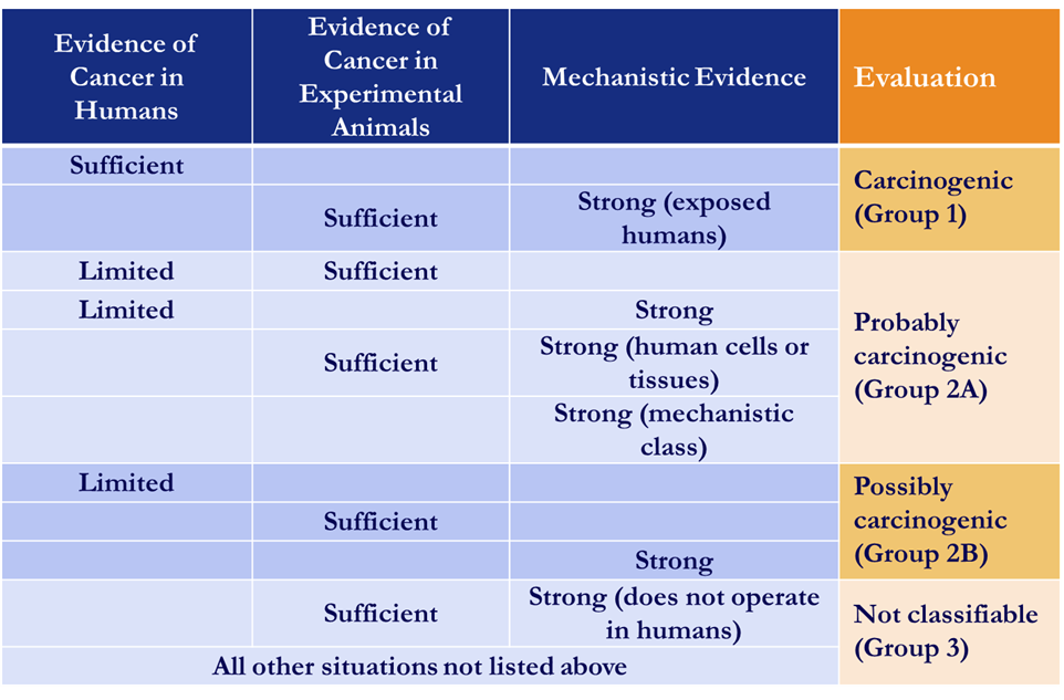 During an IARC Monographs evaluation, experts critically review the scientific evidence according to strict criteria, which focus on determining the strength of the available evidence that the agent causes cancer. These criteria are described in the Preamble to the IARC Monographs, which is available on the IARC Monographs website: https://monographs.iarc.who.int/wp-content/uploads/2019/07/Preamble-2019.pdf.