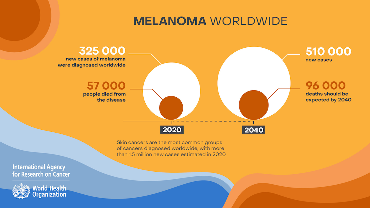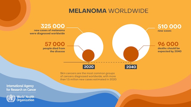 A new study by scientists from the International Agency for Research on Cancer (IARC) and partners predicts that the number of new cases of cutaneous melanoma per year will increase by more than 50% from 2020 to 2040. The study, published in the journal JAMA Dermatology, provides global patterns of cutaneous melanoma in 2020 as well as projections of the numbers of new cases and deaths for 2040. Read the article