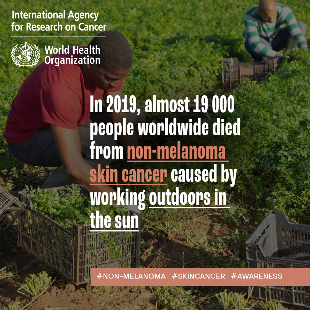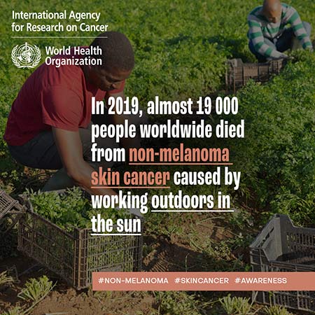 The International Agency for Research on Cancer (IARC) is marking Global Non-Melanoma Skin Cancer Awareness Day by releasing a collection of social media tiles that highlight the burden of cancer attributable to occupational exposure to solar ultraviolet radiation.