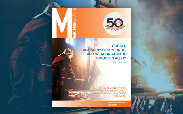 The results of the recent IARC Monographs evaluation of the carcinogenicity of nine agents, including cobalt metal (without tungsten carbide or other metal alloys), soluble cobalt(II) salts, cobalt(II) oxide, cobalt(II,III) oxide, cobalt(II) sulfide, other cobalt(II) compounds, trivalent antimony, pentavalent antimony, and weapons-grade tungsten (with nickel and cobalt) alloy, have now been published in The Lancet Oncology. This summary article presents the conclusions of IARC Monographs Meeting 131. Read News item
