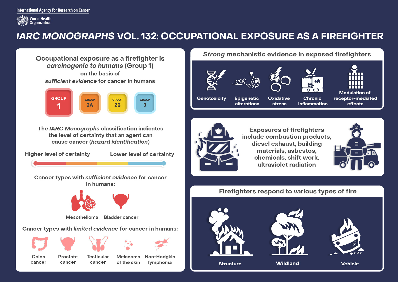 The International Agency for Research on Cancer (IARC), the cancer agency of the World Health Organization (WHO), has evaluated the carcinogenicity of occupational exposure as a firefighter.