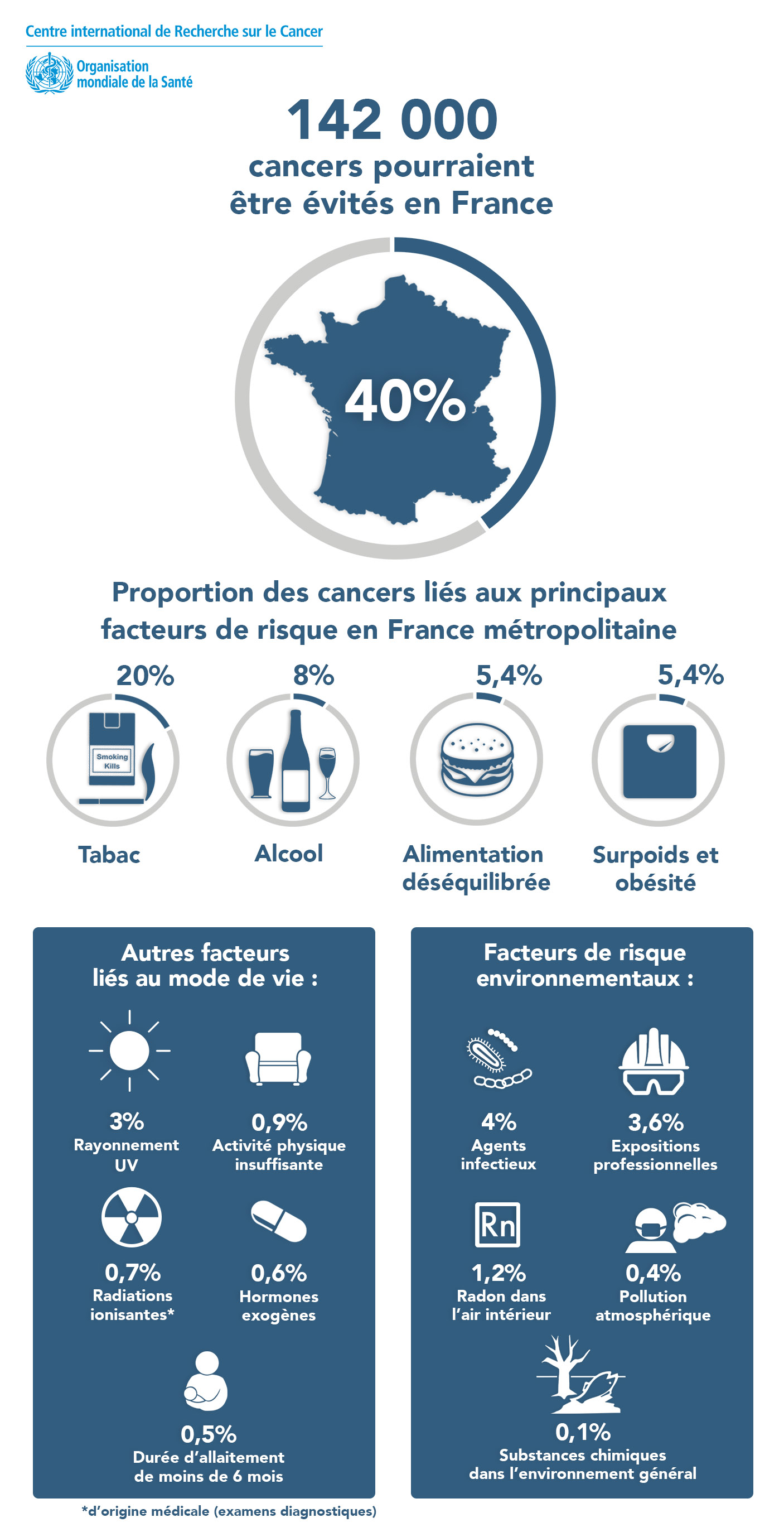 Proportion des cancers liés aux principaux facteurs de risque en France métropolitaine View Fermer mode lecture HAUT