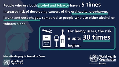 A new fact sheet from the International Agency for Research on Cancer (IARC) and the World Health Organization (WHO) Regional Office for Europe highlights the relationship between alcohol and cancer. To find out more, view the infographics below or read the fact sheet “Alcohol and cancer in the WHO European Region: An appeal for better prevention”.