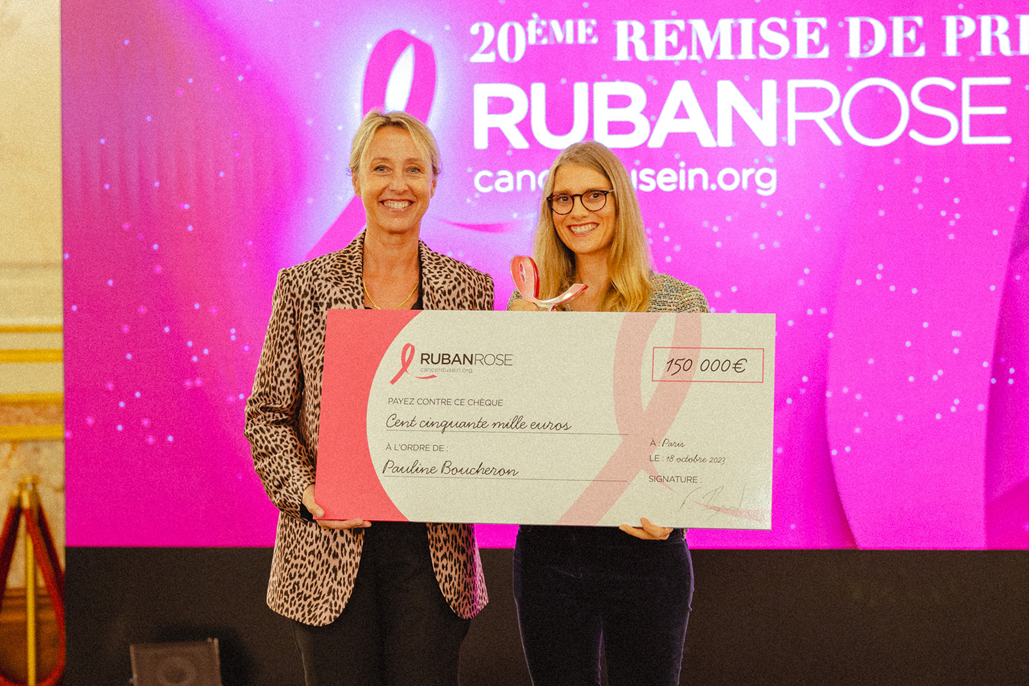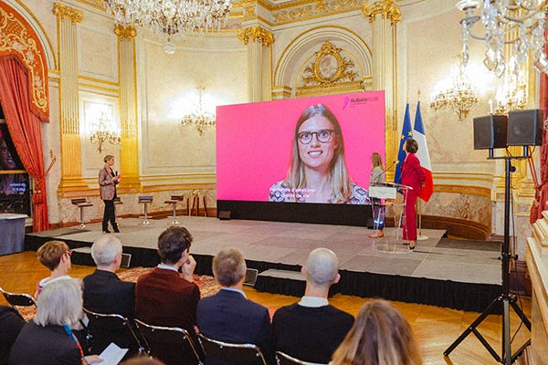 Dr Pauline Boucheron, a postdoctoral scientist in the Environment and Lifestyle Epidemiology Branch at the International Agency for Research on Cancer (IARC), was awarded one of five Quality of Life prizes by the Association Ruban Rose at a ceremony at the French National Assembly in Paris on 18 October 2023. The €150 000 award will fund research for Dr Boucheron’s project Virtual RealiTy and mUsic in the Oncology SEtting (VRtuose), which aims to improve the quality of life of patients with breast cancer who are undergoing chemotherapy through a tool that combines virtual reality with music.