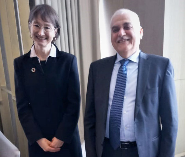 IARC Director Dr Elisabete Weiderpass meets with Mr Jamil Jabak, the Minister of Health of Lebanon, to discuss cancer prevention.