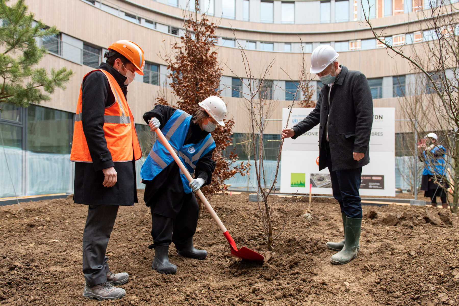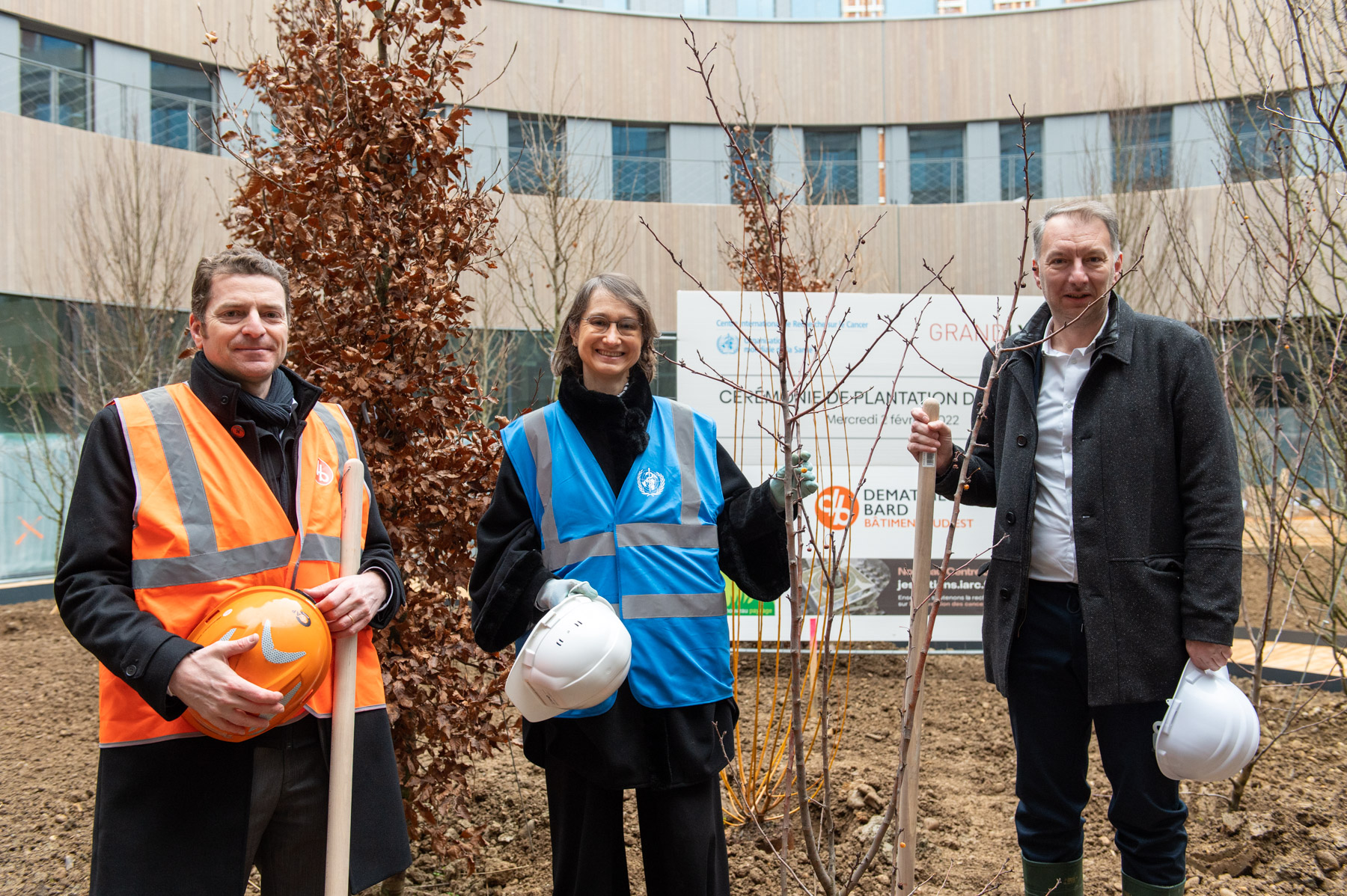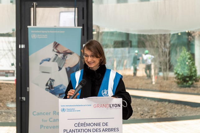 Dr Elisabete Weiderpass, Director of the International Agency for Research on Cancer (IARC), planted a tree in the central garden of the new IARC headquarters, the Nouveau Centre building, during a ceremony on 2 February 2022 to mark World Cancer Day, which is observed on 4 February every year.